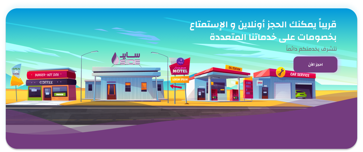 سايد هي علامة مميزة ورائدة في مجال بيع الوقود ومتاجر التجزئة في المملكة العربية السعودية تماشيا مع رؤية المملكة الحبيبة 2030 و التزاما بكل معاير الخدمات المميزة و المواكبه لتطورات العصر. تجربتنا سوف تضع معايير جديدة لبيع الوقود وتجارة التجزئة في المملكة العربية السعودية وتقديم خدمات عالية الجودة.